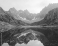 Fototapeta Mountain lake reflecting majestic peaks at sunrise.
