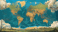 Fototapeta Artistic world map illustration with clouds and landscape.