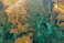 Fototapeta Aerial drone bird's eye view of swimming spearfishing diver in rocky seascape located in Costa Blanca, Torrevieja, Spain