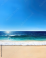 Fototapeta serene beach scene with gentle waves and clear blue sky