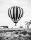 Fototapeta Gorące powietrze balonowy lądowanie w afrykańskiej sawannie. Obraz czarno-biały.