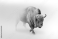 Fototapeta Bizon wychodzący z mgły w skali szarości