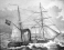 Fototapeta First Paddle steamer (Steam ship) from English fleet 1839 Antique Ilustration from Brockhaus Konversations-Lexikon 1908
