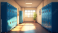 Fototapeta  学校のロッカーと廊下の空の風景、モーニングライト、教育施設のインテリア