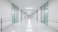Fototapeta Long Bright Hospital Corridor With Doors and Lights