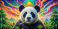 Fototapeta Psychedelic Panda Smoking Marijuana: Colorful Landscape