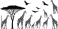 Fototapeta African giraffe wildlife silhouette with acacia tree birds flying, savanna nature illustration, black white safari animal art, vector design background