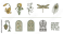 Fototapeta Collection of Art Nouveau style illustrations including flora fauna architectural elements and typography