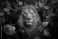 Fototapeta Lion portrait with flowers and leaves. Creative animal portrait. Generative Ai