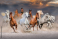 Fototapeta Końskie stado biegnie szybko w pustynnym pyle przeciw dramatycznemu zmierzchu niebu