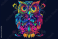 Fototapeta An abstract and colorful portrait of an owl done in the style of pop art, superimposed on a black backdrop.