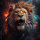 Fototapeta A fierce lion with a flowing mane, set against a vibrant, colorful background, exuding strength and majesty.