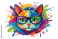 Fototapeta Colorful artistic cat  with colorful paint splatters on white background.