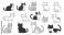 Fototapeta Set of illustration with happy cute different cat character on white color background. Flat line art style design of group of animal cat in different pose