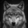 Fototapeta A close-up portrait of a wolf with intense eyes and a focused expression, set against a dark background.