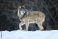 Fototapeta Eurasian wolf, Canis lupus lupus, huge gray wolf in winter, wild animal, close encounter. Stalking Wolf in the forest, frosty conditions, snowfall. Poloniny mountains, Poland.
