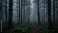 Fototapeta Dark forest engulfed in fog with a ghostly appearance.
