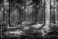 Fototapeta A tranquil forest scene featuring tall trees and lush green moss covering the forest floor, illuminated by soft rays of sunlight piercing through the canopy.