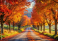 Fototapeta Crisp autumn air, Italian countryside road, fall foliage sharply in focus.