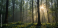 Fototapeta The first light of dawn filtering through the trees in a forest, casting long shadows and illuminating the dew-covered foliage.