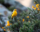 Fototapeta Yellow Bird on Pine Branch, Mountain Flowers