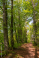 Fototapeta Waldweg mit Buchenbäumen, im Hintergrund die Waldlichtung