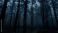Fototapeta Dark spooky forest at night, covered in fog, with tall trees and a creepy atmosphere