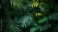 Fototapeta Dense tropical leaves in a lush setting.