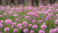 Fototapeta Pink flowers in a field with lush green grass and trees in the background. Nature, blooming, summer, and garden.