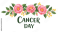 Fototapeta A floral watercolor illustration with pink blossoms and the words cancer day, symbolizing awareness and support for cancer patients