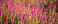 Fototapeta Blooming field against the background of mountains. Beautiful landscape with lavender flowers. Spring background of colorful landscape. Mountain pink flowers.