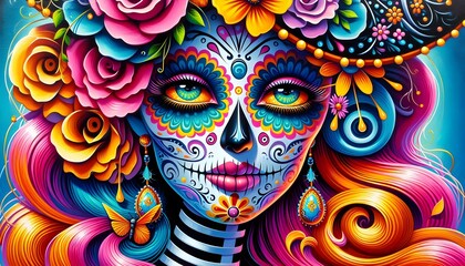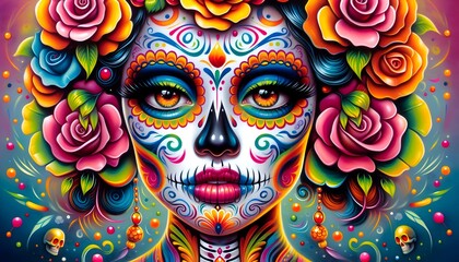 A captivating portrait of a woman with vibrant, abstract colors swirling around her face, highlighting her striking green eye.