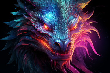 Fiery Mythical Dragon Creature with Glowing Colorful Ethereal Wings