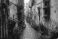 Naklejka na meble Narrow, cobblestone alleyway lined with weathered, yellow buildings and potted plants