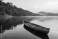 Fototapeta Serene Sunrise Over a Calm Lake With a Lone Wooden Boat