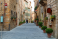 Fototapeta Piękna wąska uliczka z tradycyjnymi zabytkowymi domami w mieście Pienza