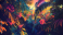 Fototapeta Surreal floral jungle canopy aglow with vibrant electric colors and lush foliage. Electric Flora. Illustration