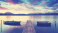 Fototapeta Holzsteg mit 2 Booten am See, Sonnenaufgang