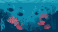 Fototapeta Deep Ocean Coral Reef Scene with Fish Silhouettes Vector Illustration