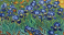 Naklejka na meble A vibrant and expressive painting of a sunlit garden with blooming blue iris flowers