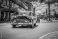 Fototapeta HDR - Schwarzer Oldtimer mit weißem Dach fährt auf der Hauptstraße an der historischen Häuserfront vorbei - Serie Kuba Reportage