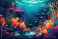 Naklejka na meble Coral Reef and Fish Graphic: Bold Lines and Vibrant Colors Background Created with Generative AI