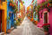Fototapeta Vibrant Street With Colorful Houses, Generative AI