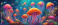 Fototapeta Beautiful Jellyfish in Pacific sea, Deep Ocean background. Generative AI