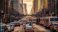 Fototapeta Busy Downtown Chicago Traffic at Sunset with Cityscape and Commuters