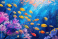 Fototapeta A colorful coral reef with a variety of fish swimming around. The fish are orange and yellow, and the water is clear and blue. The scene is peaceful and serene, with the sun shining down on the reef