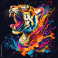 Naklejka na meble A vibrant, abstract depiction of a tiger's head with a powerful roar, set against a dark background.