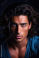 Fototapeta Sigma Male with Long Brown Hairs and Brown Eyes looking at camera Serious. Male Model.