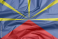 Fototapeta Fabric flag of reunion. Crease of reunion flag background, red yellow and blue color.