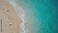 Fototapeta Bird's-eye perspective of a woman reclining on a sandy shore beside crystal-clear ocean waves under bright summer skies